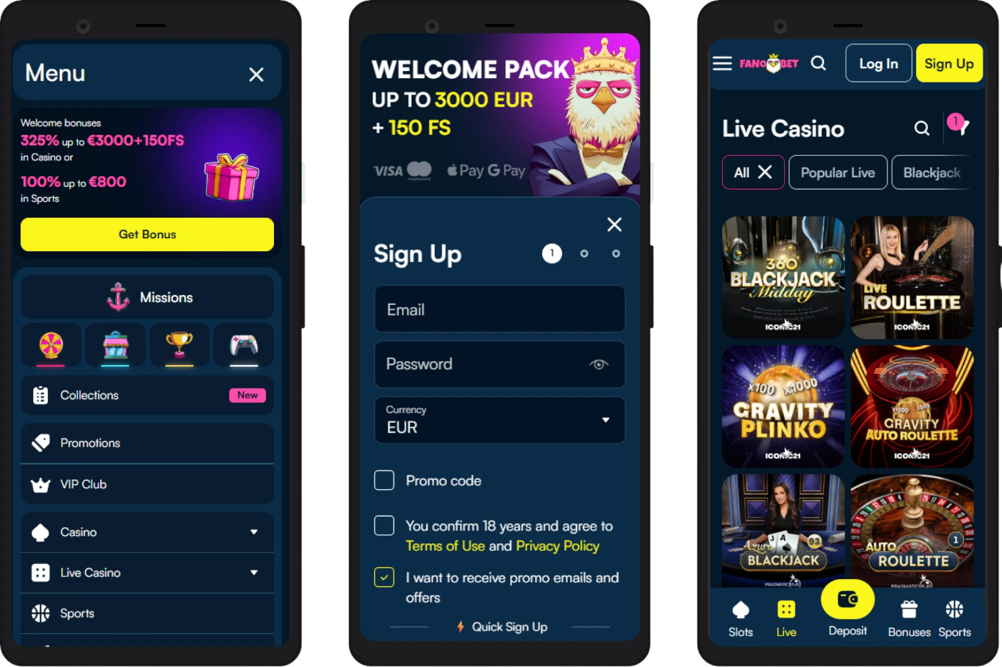 Fanobet zorgt ervoor dat je favoriete spellen en weddenschappen altijd binnen handbereik zijn. Het platform is volledig geoptimaliseerd voor mobiel gebruik. Of je nu een smartphone of tablet gebruikt, via de mobiele browser krijg je een naadloze ervaring die even compleet is als op de desktop. Alles werkt soepel: van het bladeren door honderden slots en het plaatsen van een live weddenschap tot het doen van een storting.
